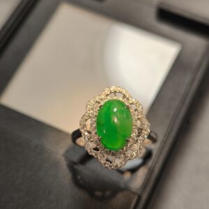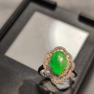 18K白金天然翡翠鑽石戒指、冰綠蛋面