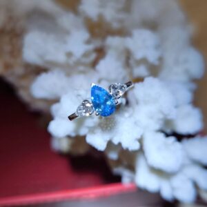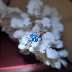 14K金培育鑽石戒指 水滴藍鑽
