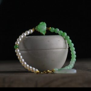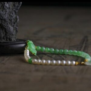 【蓬籽】18K金镶嵌天然A货翡翠莲蓬海水珍珠手链