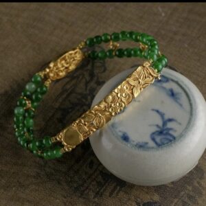 【錾刻手牌】【莲花宝瓶】翡翠18K金錾刻宝瓶兰花手牌